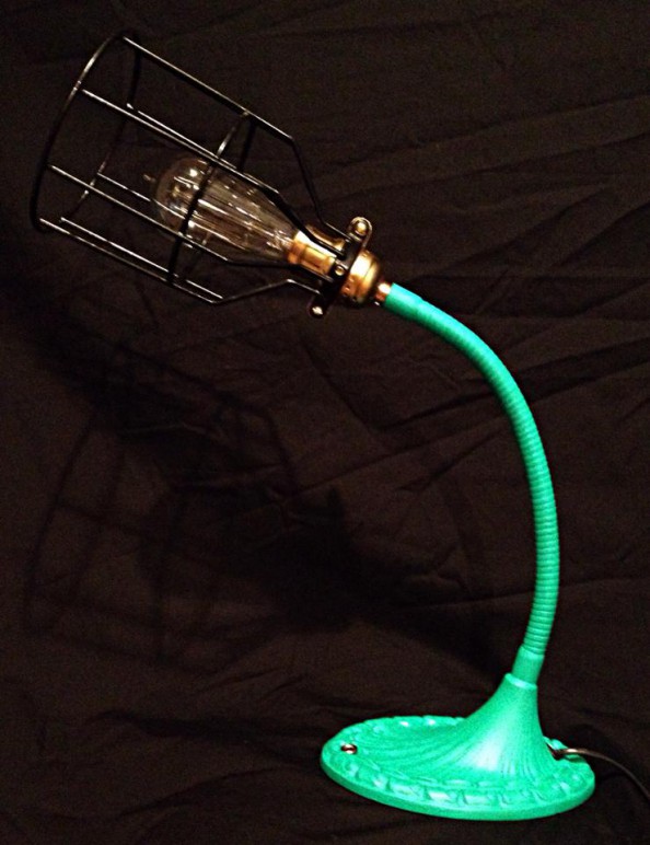 Vintage goose-neck lamps up-scaled using Edison bulbs and bulb cage.